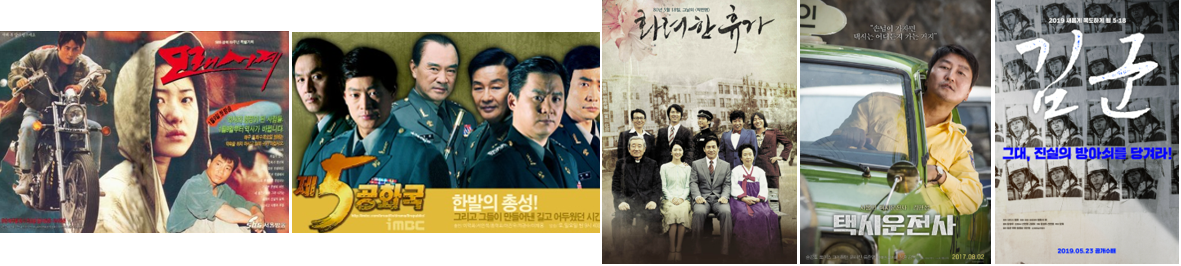 1995년 방영된 드라마 <모래시계>1970년대 유신정권 시절부터 1980년대 5·18광주민주화운동 등 한국 사회에서 금기시되던 정치적 사건들을 다루며, 근대사의 어두운 장면들을 드라마에서 재현하였지만 신군부의 책임을 직접적으로 다루기보다는 개별 군인의 시점에서 진압 과정을 묘사하는 방식을 선택했습니다. 드라마에서 다루어진 주된 갈등은 5·18이 아니라 주인공들의 개인적 비극에 해당했고 5·18과 같은 역사적 사건은 직접적으로 다루기보다 단순한 배경으로 활용되는 방식으로만 다루어졌습니다.